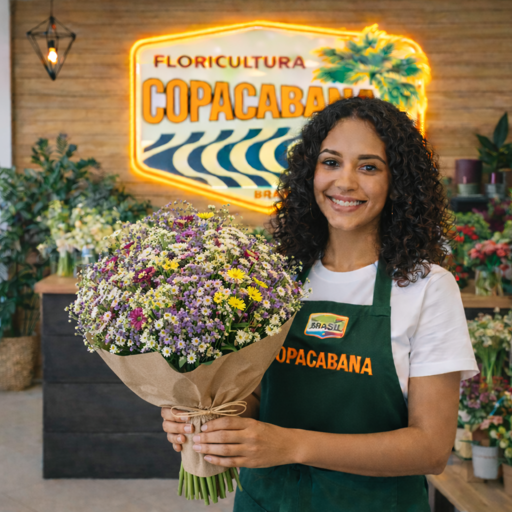 Flores do Campo – Grande com mix de flores coloridas, montagem artística e folhagens selecionadas.